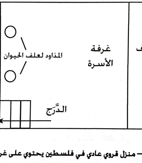 أما بشأن كلمة “مذود” كما يفهمها العقل المعاصر -وخصوصًا في الغرب- فهي تستحضر له صورة “حظيرة الماشية” أو “الزريبة”. إلا أنها لا تعني ذلك في بيئة أرياف الشرق الأوسط؛ ففي مثل الغني الغبي (لو12: 13-21) تُذكر كلمة “مخازن”، التي توحي بمكان منفصل عن المنزل لخزن الحبوب أو لحماية الماشية أو لإيواء العربات. ومن الطبيعي أن توجد مثل هذه عند أصحاب الثروة الطائلة، لإيزاء الماشية. لكن بيوت بسطاء قرى فلسطين كانت في الأغلب لا تزيد عن غرفتين ظلت إحداهما مخصصة دائمًا لاستقبال الضيوف. وكانت هذه ملحقة بطرف المنزل أو بمثابة “عليَّة النبي” فوق سطح المنزل، كما ورد في قصة إيليا (1مل17: 19). أما الغرفة الرئيسية فهي غرفة العائلة؛ حيث الأسرة كلها تعد طعامها وتأكل وتنام وتقيم. وفي طرف هذه الغرفة، تخصصت مساحة للماشية – إما أسفل الأرضية بحوالي متر أو على نفس مستوى الأرضية على الناحية مع وجود جذع خشبي عريض يفصل مساحة الدواب عن غرفة العائلة. في الليل تساق البقرة والحمار وبعض الخراف التي تمتلكها الأسرة إلى تلك المساحة المخصصة لها، وفي الصباح تساق إلى الفناء الخارجي جوار المنزل، فيتم تنظيف المكان. ويستطيع المرء أن يشاهد هذه النماذج البسيطة للمنازل الريفية التي وُجدت منذ عصر داود وحتى منتصف القرن العشرين. وقد رأيتها في أعالي الجليل كما وفي بيت لحم؛ ونستطيع أن نتصور بساطتها من شكل رقم 1:1.